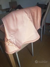 copri tavolino o tavolo , tagliato e cucito apposta da una sarta... colore rosa antico rifinito con bordo...
