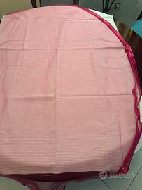 Copri tavolo nuovo senza cartellino mai utilizzato. Di colore fucsia, in velo con bordo di raso. Utilizzabile per abbellire tavolo per feste. Diametro 180cm Disponibile alla spedizione