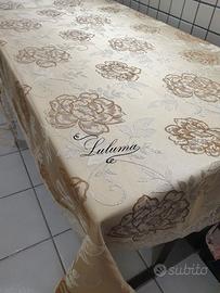 Copri tavolo/tovaglia per le feste x 12 con applicazione di merletto. Nuovo, artigianale.