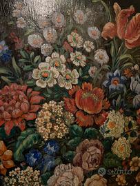 copricamino antico con pattern floreale pezzo raro dipinto a mano misure > 100 x 105cm