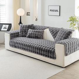 opricuscini per divani in morbido peluche - Nuove coperture antiscivolo per divani a 1 2 3 posti, copertura per divano in pelliccia sintetica, protezione per mobili a forma di L (Grigio scuro)..
