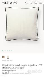 Copricuscini in velluto westwing con superficie strutturata Carter 2 pz. Bisnco katte con bordo nero 45x45 2 imbottuture cuscini Acquistati a gennaio 2025. Vendo causa trasloco 25€ entrambi