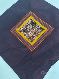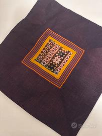 Dettagli: Il cuscino presenta un raffinato ricamo centrale con motivi geometrici e floreali stilizzati (bianco, rosso, nero e giallo). Il lavoro artigianale lo rende un pezzo unico, ideale per arredamenti Boho, etnici o classici.