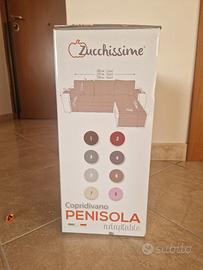 Copridivano 3 posti con penisola (reversibile, si può usare sia con penisola a dx sia a sx), mai utilizzato per misure errate.