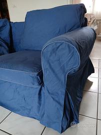 copridivano modello IKEA EKTORP a 3 posti in tessuto jeans robusto leggermente scolorito
