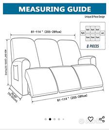 Copridivano elasticizzato verde salvia scuro in 8 pezzi, mai usato perché non si adatta al mio divano. Ottimo tessuto. Misure in foto