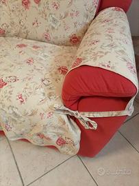 Copridivano country shabby in cotone per divano 2 posti. Marca Anversa. Larghezza seduta del divano in foto è 105 cm e questo telo la copre molto bene. Ha una fascia per tenerlo ancorato ai cuscini della seduta del divano. Facile da mettere e togliere. Mai usato, ma senza confezione.