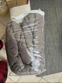 Vendo copridivano nuovo, tessuto di ottima fattura trapuntato a rombi, mai usato . Il colore è grigio medio su carta ma ha una tonalita sul beige, un tono elegante e neutro che si adatta facilmente a qualsiasi arredamento.