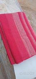 2 copriletto per letti singoli, nuovi mai usati, in vivace fantasia a righe multicolore su sfondo rosso corallo ideali per la primavera e l’estate. Le righe dai toni allegri (giallo, blu, verde, arancio, ecc.) donano un tocco di colore e freschezza alla camera.