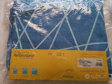 Due copriletti Singoli Piquet, mai usati. Misura 180x270,made in italy. Stato come da foto. Guardare tutte le immagini prima di effettuare l'acquisto per assicurarti di essere soddisfatto delle condizioni dell'articolo. Formula visto e piaciuto.
