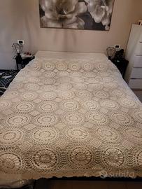 Copriletto all'uncinetto fatto completamente a mano dalle sapienti mani di mia nonna. Lasciato in eredità e mai utilizzato. Perfetto condizioni.