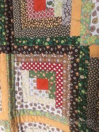QUILT originale americano anni 50 cm 180 X 232. Tipica lavorazione a patchwork di artigianato US da una parte e bianco/ecru dall'altra. Di cotone trapuntato è in perfette condizioni. Sul retro ha degli anellini (anch'essi originali) x essere appeso come arazzo oppure può coprire un letto. Si tratta di un "Log Cabin" quilt, dedicato a Lincoln perché Lincoln era nato in una capanna di tronchi e faceva il boscaiolo. Il quadrato rosso rappresenta il focolare, attorno al quale varie strisce (come log - tronchi) compongono il disegno. Prezzo trattabile.