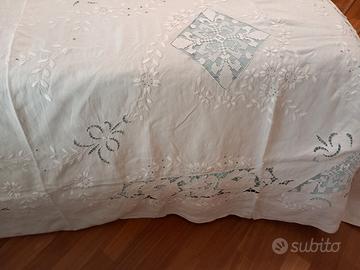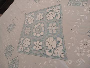 Copriletto antico a uncinetto fatto a mano di pregio.
