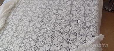 Copriletto realizzato nei primi del 1900, in cotone ,lavorato ad uncinetto in un unico ricamo (non sono cuciti tra loro). Perfette condizioni, misura m.2,93 in lunghezza e m.2,78 in larghezza. Adatto a letti alti.