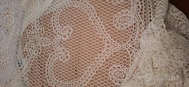 Copriletto in cotone bianco, tutto a chiaccherino eseguito a mano molto finemente, misure 240x280.
