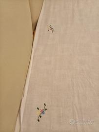 Copriletto in cotone anni 70, con lavorazioni "greche" a uncinetto e con roselline e rami ricamati a mano. (vedi il dietro del copriletto, ultima foto)
