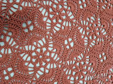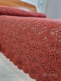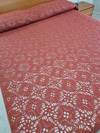 Splendido copriletto realizzato interamente a mano negli anni 60-70 con lavorazione crochet di alta qualità, caratterizzato da un raffinato motivo floreale traforato che crea un elegante effetto tridimensionale. Ogni dettaglio testimonia una lavorazione paziente e accurata.