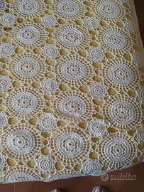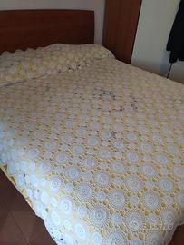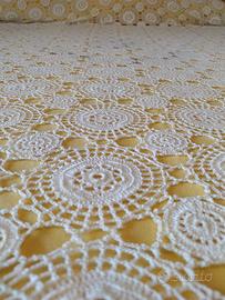 Vendesi copriletto matrimoniale di cotone all'uncinetto, fatto interamente a mano, di colore bianco, terminato nel 1984