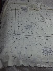 copriletto in cotone,x letto matrimoniale. tutto fatto a mano, intaglio, anni 70,/80.. misure 2,10/2,20. usato 2 volte.