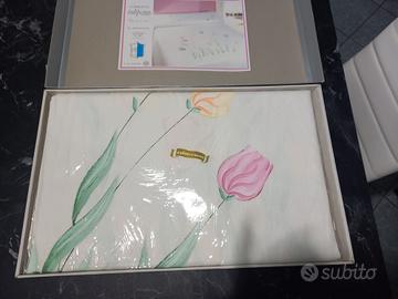 bellissimo copriletto bianco con motivi floreali dipinti a mano. molto sobrio e accattivante. confezione integra, mai aperto e quindi mai usato. Misto lino cotone, lavabile a 40 gradi. Ottimo anche come idea regalo.