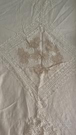 Copriletto e tenda in lino e tulle. Ricamato a mano. Misure standard. Tenda compresa di fettuccia. Sia la tenda che il copriletto sono Senza difetti
