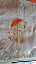 1 copriletto bianco e 1 tovaglia bianco con ricamo a mano made in Portogallo nuovi corredo spedizione max 15 kg.