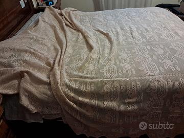 Vendo ad intenditori di uncinetto, lavoro a Filet, copriletto fatto a mano ( 1 anno di lavoro e ore infinite) tinta beige, filato cotone