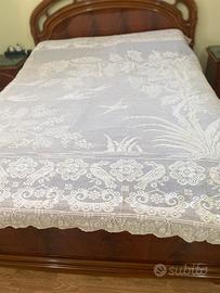Copriletto interamente fatto a mano senza cuciture con cotone pregiato filo di scozia nuovo mai usato fatto negli anni 70 in regalo coperta da mettere sotto per esaltare il disegno senza etichetta perche fatto da mia zia