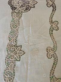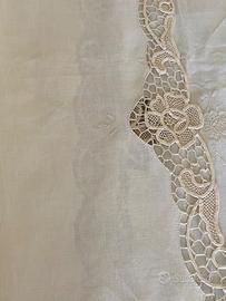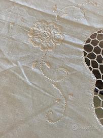 Copriletto in puro Lino, ricamato con applicazioni in Burano, lavorato interamente a mano. Le misure sono: larghezza 220 cm, lunghezza 260 cm Per veri intenditori.