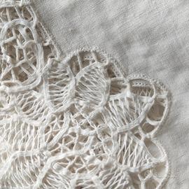 Il lino è 100% naturale, di alta qualità, pesante e luminoso, tipico dei corredi importanti di una volta.