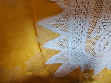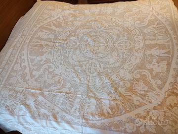 Copriletto ricamato in pura seta, realizzato a mano su un telaio antico. Misure 220x250 cm. Parte di un completo letto matrimoniale di metà XX secolo. Mai usato.