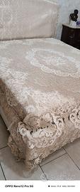 copriletto in pizzo di burano in ottime condizioni colore beige con parti in lino usato 1 volta già lavato e stirato