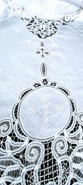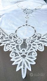 P.S. Segnalo che dello stesso corredo, è disponibile la tovaglia rettangolare con identica lavorazione e con i suoi 12 tovaglioli coordinati. Perfetta da abbinare al copriletto, per una dote o un regalo importante.