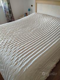 Vendo copriletto matrimoniale leggero colore panna con borsina in tessuto, cm 250x250. Volant con piccole rose sui tre lati, perfetto