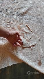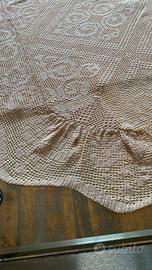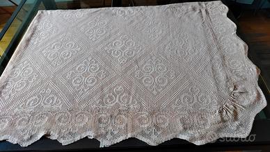 2 copriletti per letto singolo, utilizzabili come tenda o copri tavolo, o unibili per letto matrimoniale. Fatti a mano, perfettamente rifiniti, colore beige rosato. Dimensioni 2.15 x 1.60cm. bordo di 12 cm su 3 lati
