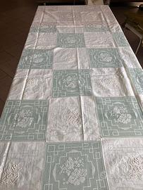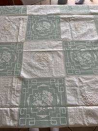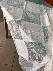 Vendo copriletto lino filet e ricamo a mano .nuovo mai usato ne bagnato ma presenta macchie da conservazione Misura 2/60-2/80 Vendo 120