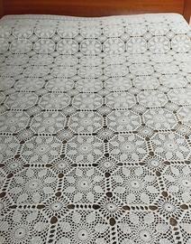 interamente eseguito a mano all' uncinetto misura cm. 220x250 in filato di cotone bianco
