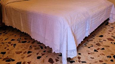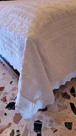 Vendesi copriletto matrimoniale in cotone pique' bianco con 2 tramezzi e orlo all' uncinetto fatto a mano circa 60 anni fa.