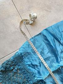 Copriletto matrimoniale Argotex azzurro elegante con fantasia floreale e frange
