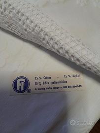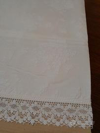 Copriletto matrimoniale con bordo di pizzo. Mai usato e perfetto. Decori in rilievo (vedi ultima foto). Prezzo trattabile