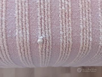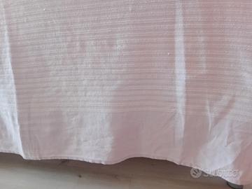 Cotone rigato da mezza stagione o anche estivo, come si vede in foto è grande e copre tranquillamente tutte le misure di letto matrimoniale. La lavorazione in rilievo presenta ogni tanto dei "nodi": è proprio fatta cosí.
