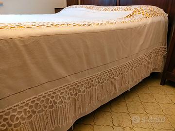 Copriletto matrimoniale d'epoca in cotone ricamato