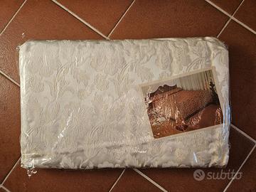 Copriletto matrimoniale damascato di raso di cotone color panna, originale anni '90.
