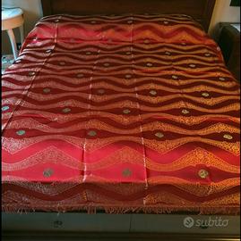 stupendo copriletto matrimoniale ricamato di un rosso cardinale in perfette condizioni..