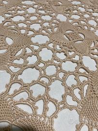 Copriletto matrimoniale di cotone, colore écru eseguito all’uncinetto, nuovo mai utilizzato, lo dimostra la lucentezza del cotone, mt. 2,50 x 2,65 . Sono disponibili anche n. 2 centrini (cm. 25x47) per i comodini e un centrino (25x79) per il comò.