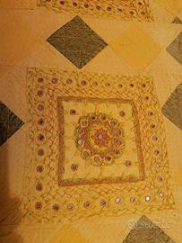 Vendo copriletto matrimoniale in stile etnico, misure: 2,50 x 2,20 mt., decorato con motivi geometrici e vetrini. Non spedisco, ritiro in Bergamo zona stadio, per contatti chiamare il numero 320 6849670 (Raffaele) anche a mezzo whatsapp