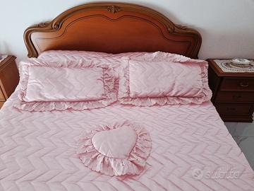 copriletto matrimoniale leggermente trapuntato, con 2 cuscini coordinati più uno a cuore,color rosa