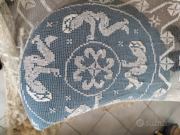 Antico copriletto matrimoniale a filet con angeli ricamato tutto a mano 240*240 Prezzo trattabile