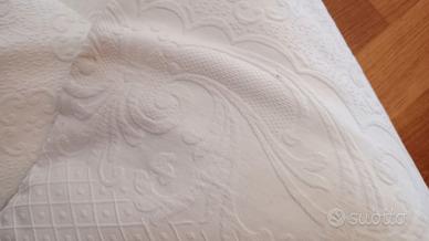 Copriletto matrimoniale bianco in piquet con bordino rosa