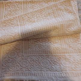 Copriletto matrimoniale in pizzo bianco di puro cotone ,foderato in tessuto di pesante cotone color beige in contrasto.Accetto offerte congrue.